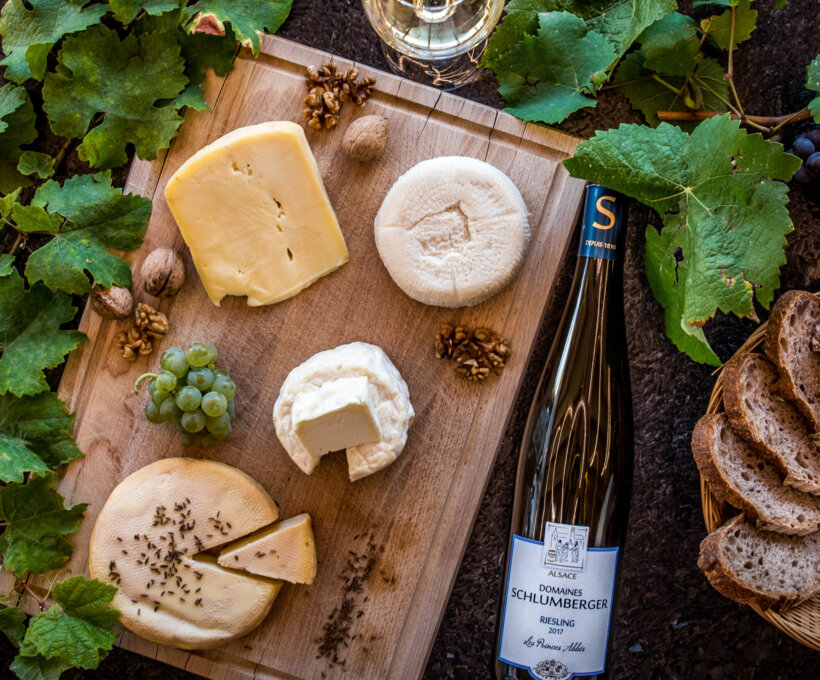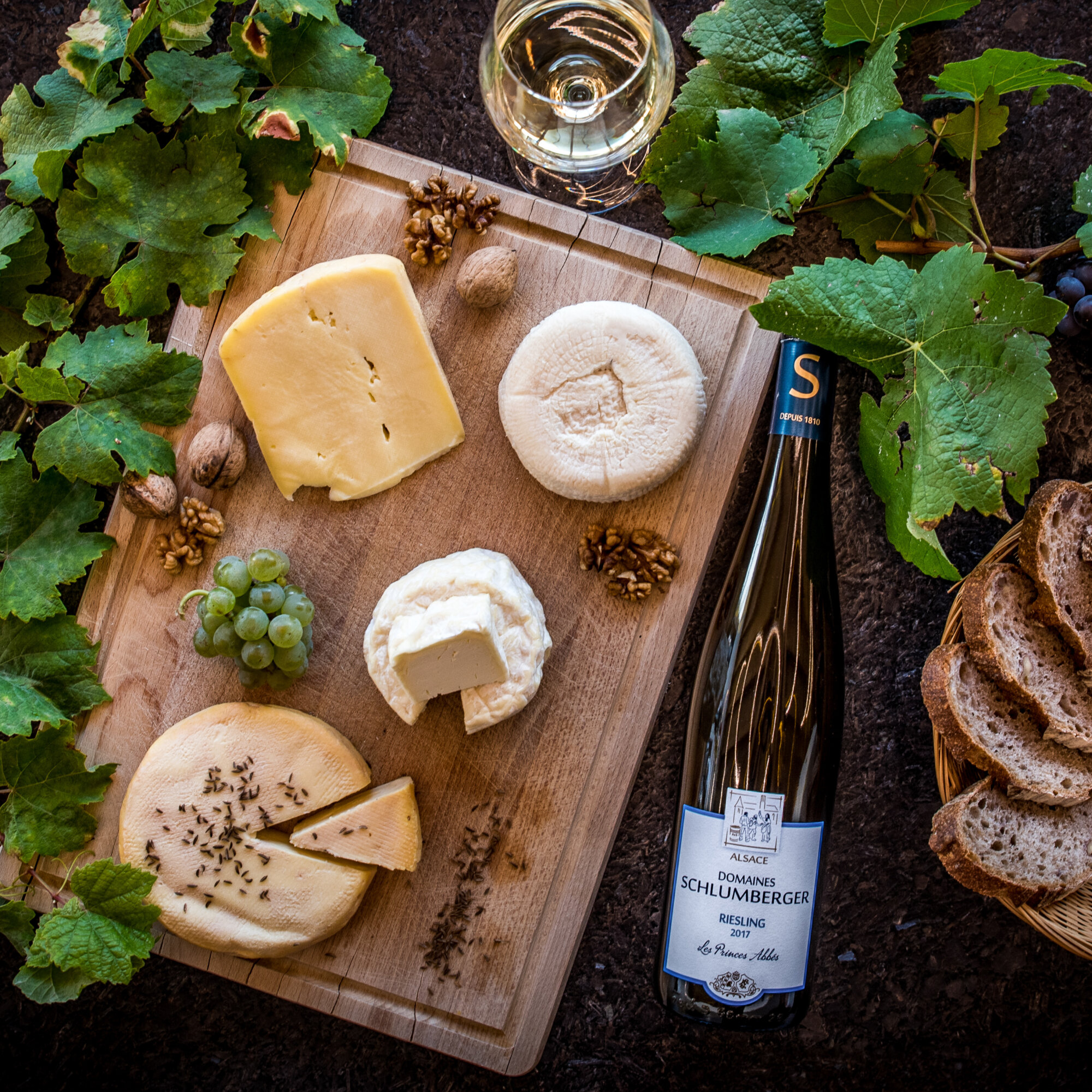 - Dégustation de 5 fromages de la maison Qui l’Eut Cru, fromager à Guebwiller, accompagnés de 5 vins du Domaine, de charcuteries, salade et dessert
